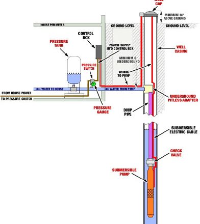 H2O offers both commercial & residential pump systems. Our service utilizes submersible pumps in residential settings. Submersible pumps are so named because the whole unit, pump and motor are designed to be operated under water. This means the pump does not have to be primed. Once installed and turned on, water flows up the pipe. Submersible pumps are much more efficient than jet pumps and much simpler to install. They are known for their reliability and often perform their role 20 to 25 years without needing to be serviced.